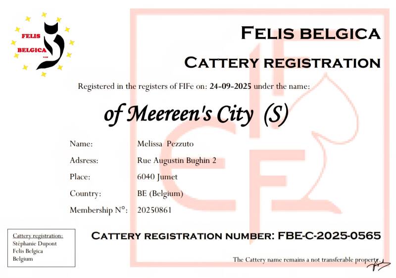 Nous avons le plaisir de vous annoncer que notre chatterie est désormais également enregistrée auprès de la FIFe (Fédération Internationale Féline), sous l’affixe officiel :